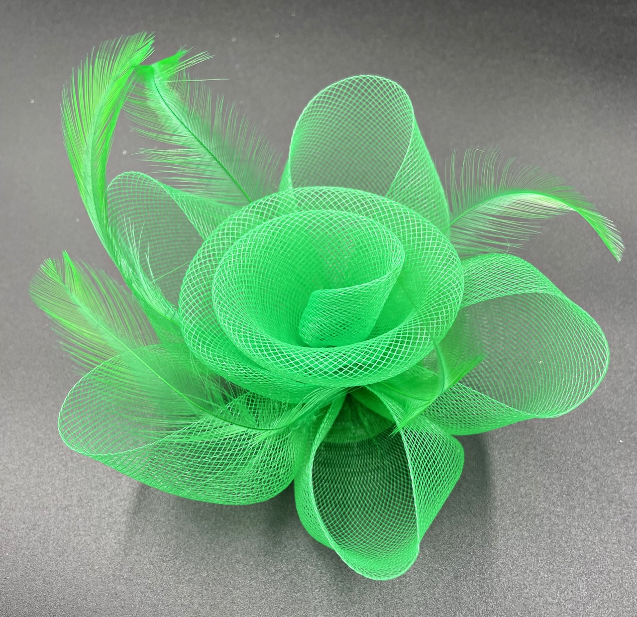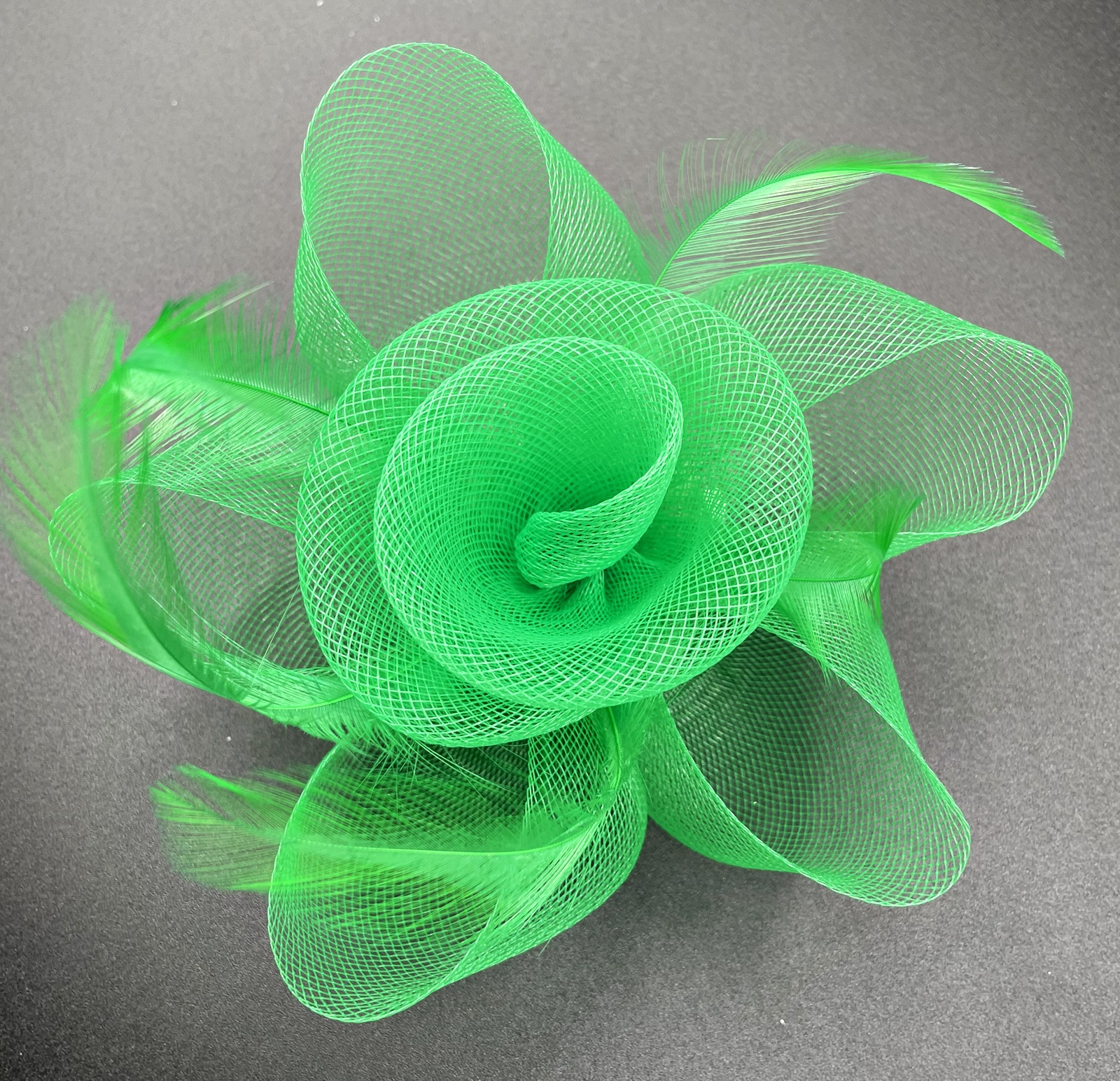 Voaleta verde - Fascinator & Brosa LUCINDA, în formă de floare, este decorată cu pene, ceea ce ii confera eleganta si rafinament.