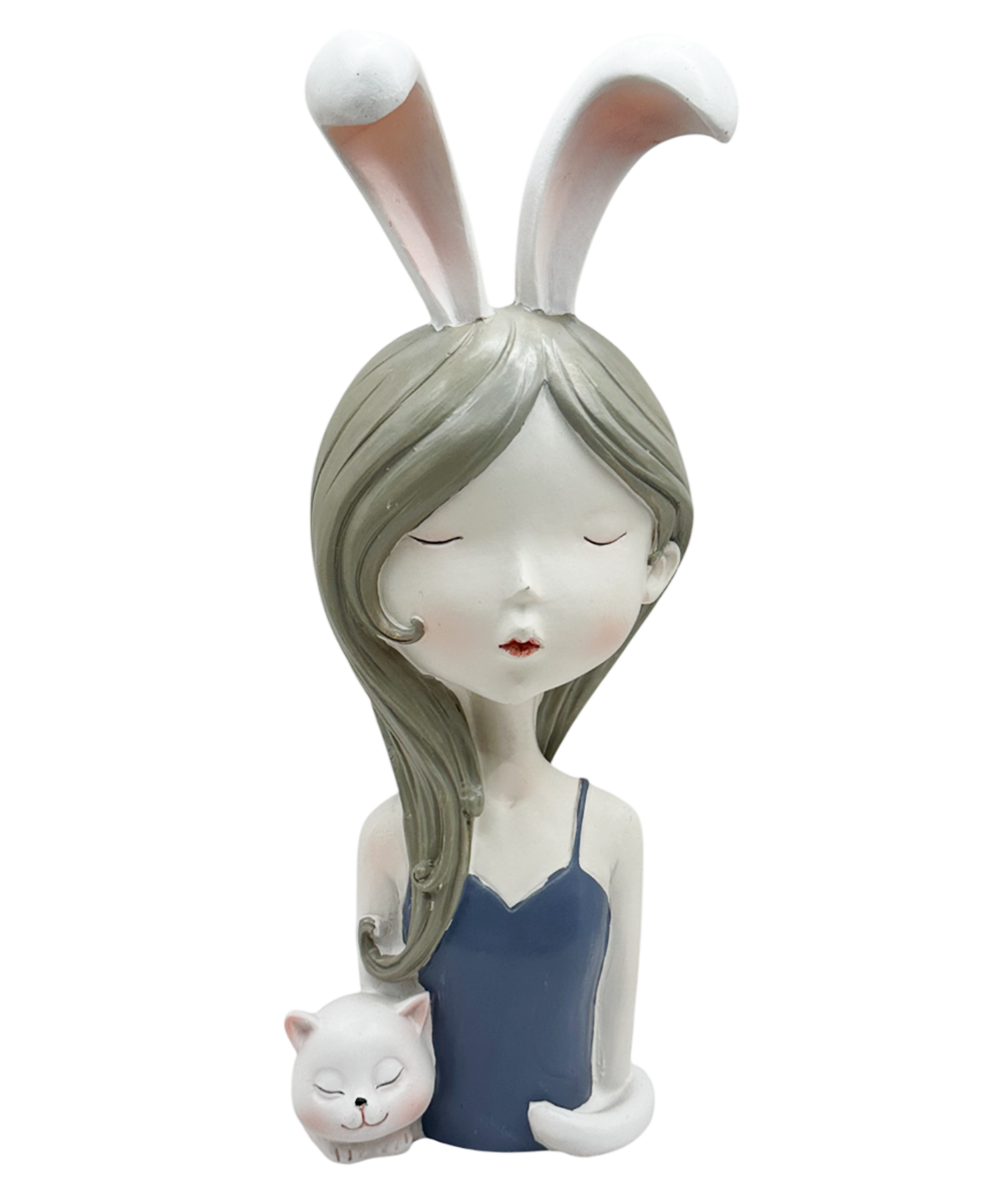 Statueta Fata cu urechi de iepuras, tinand in mana o pisica