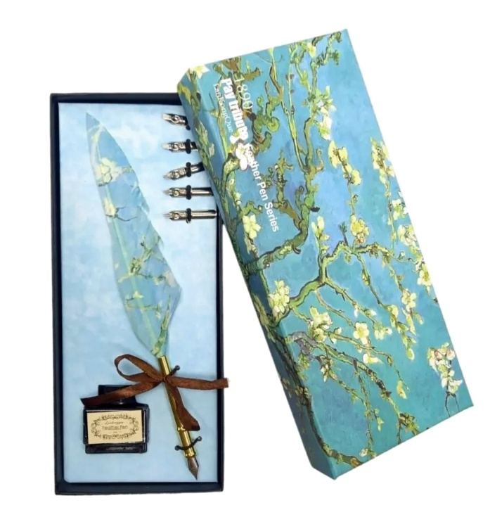 Un set rafinat de caligrafie inspirat de pictura „Almond Blossom” a lui Van Gogh, ideal pentru iubitorii de artă și scris de mână.