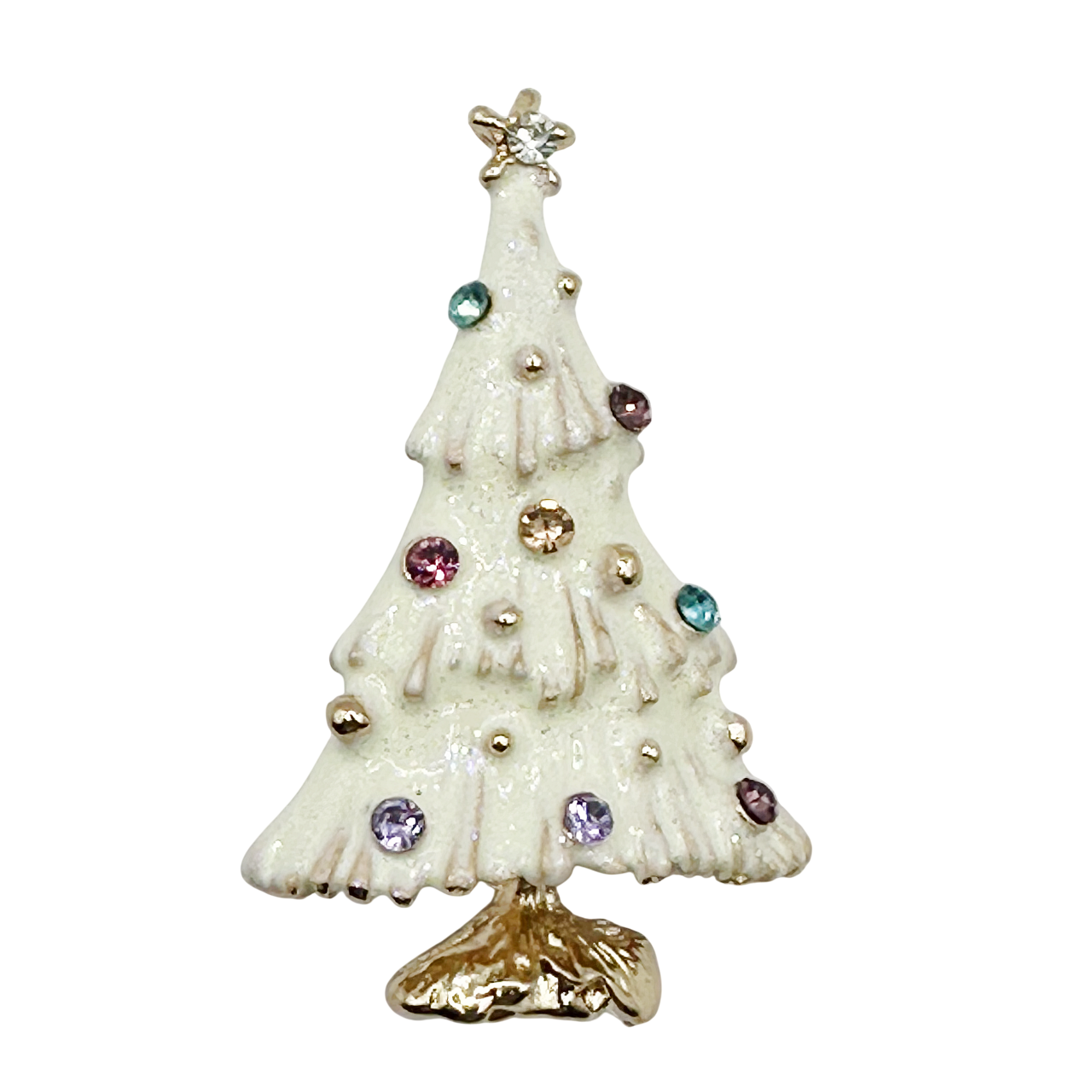 Brosa Craciun - Bradut cu strasuri JOYFUL, Alb/ Auriu