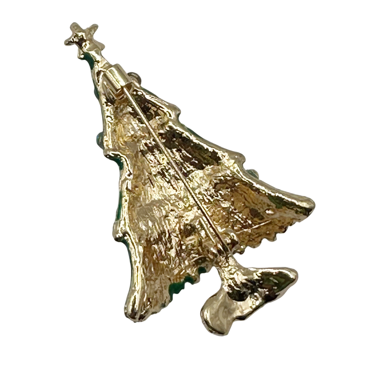 Brosa Craciun - Bradut cu strasuri JOYFUL, Verde/ Auriu