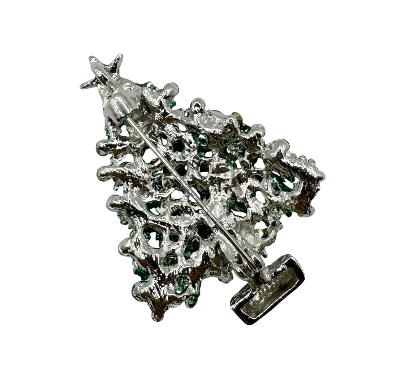 Brosa Craciun - Bradut cu strasuri PINEY, Argintiu