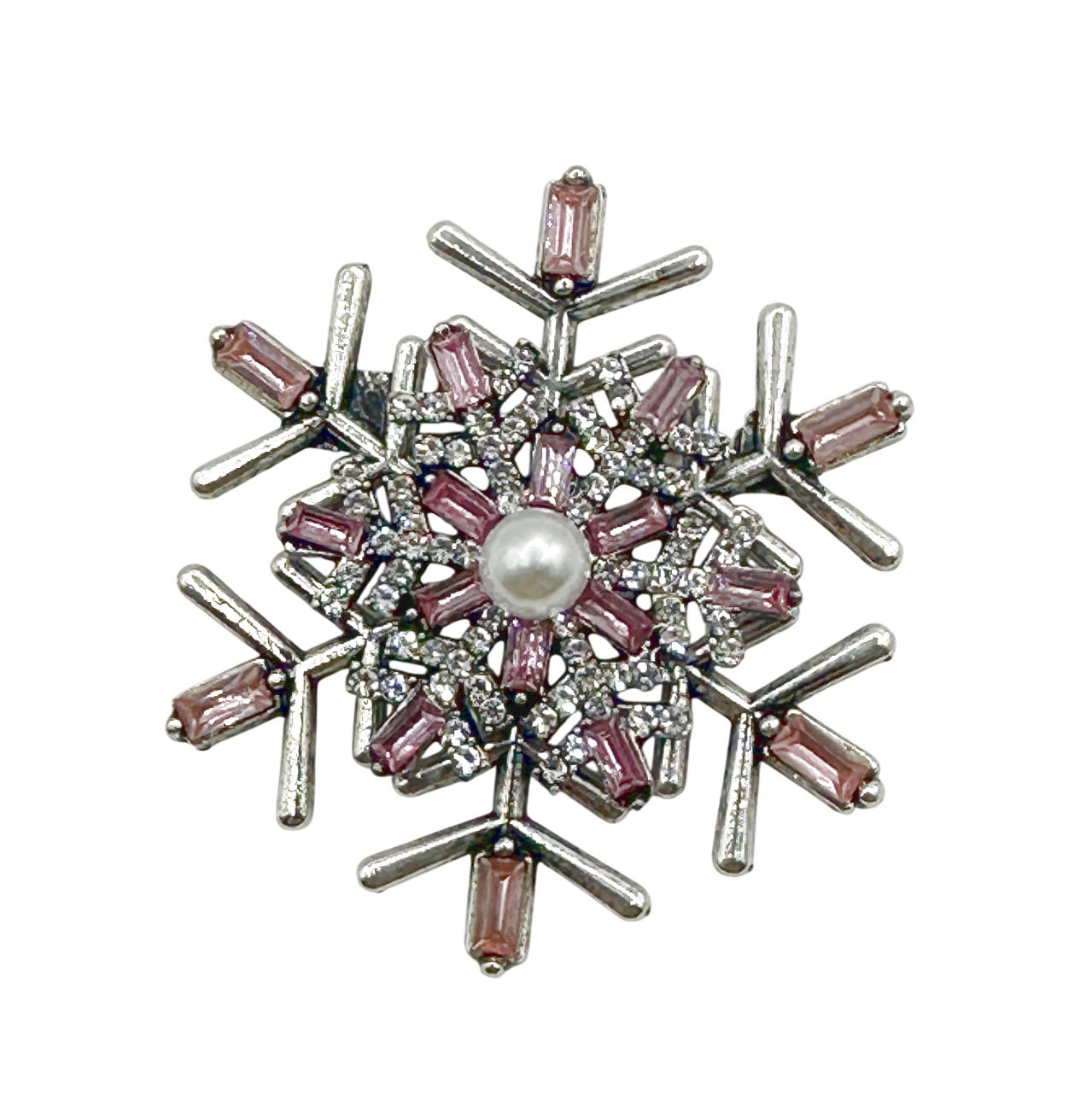 Brosa Fulg De Nea cu strasuri SNOW, Argintiu/ Roz