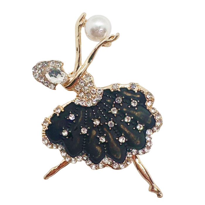 Brosa Balerina cu rochita neagra si strasuri EMILY, Auriu, 5 cm