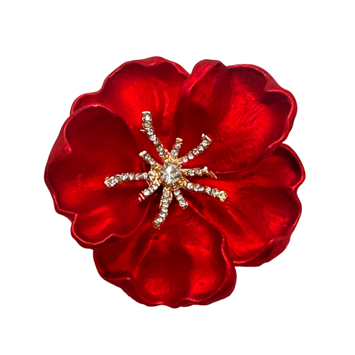 Brosa Floare rosie CARDINAL cu strasuri, 4 cm