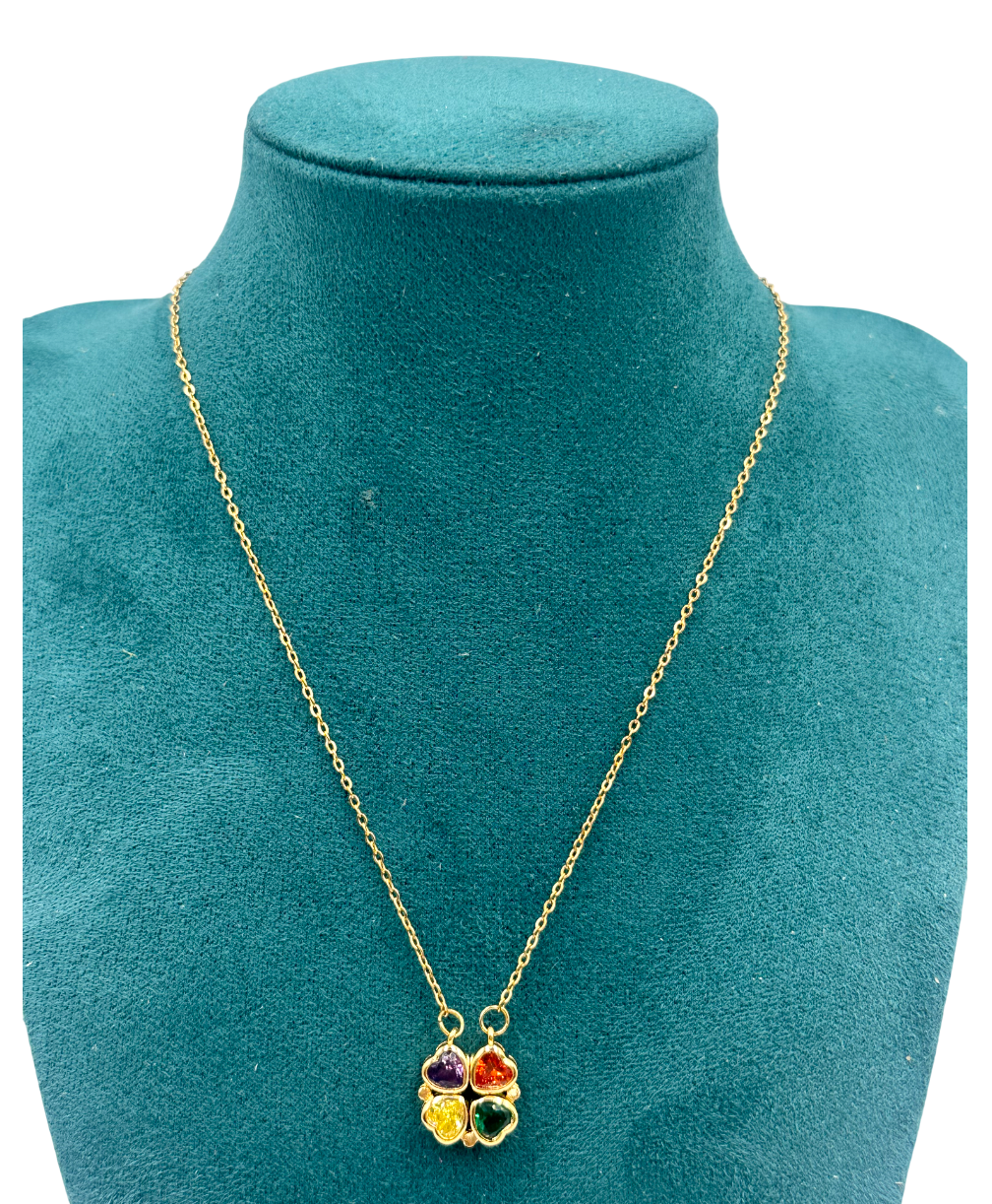 Delicat și plin de semnificație, pandantivul „CLOVER” în formă de trifoi este un simbol al norocului, armoniei și energiei pozitive. Designul său elegant este evidențiat de cele patru elemente din zirconiu colorat, montate într-un cadru auriu fin.