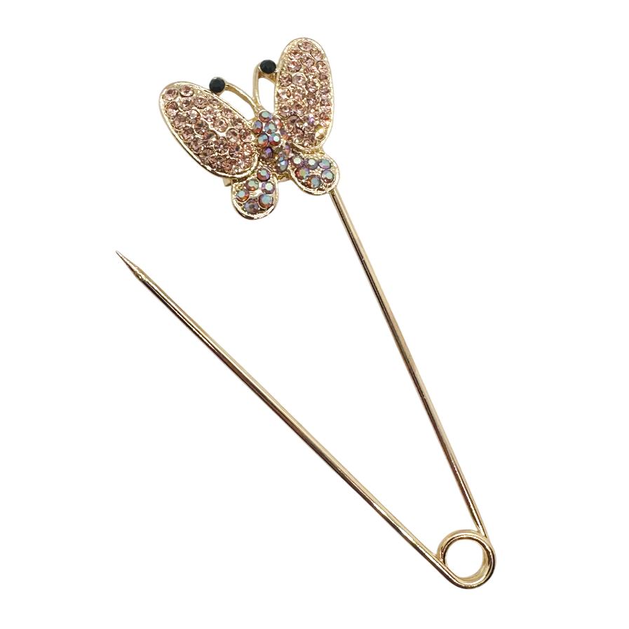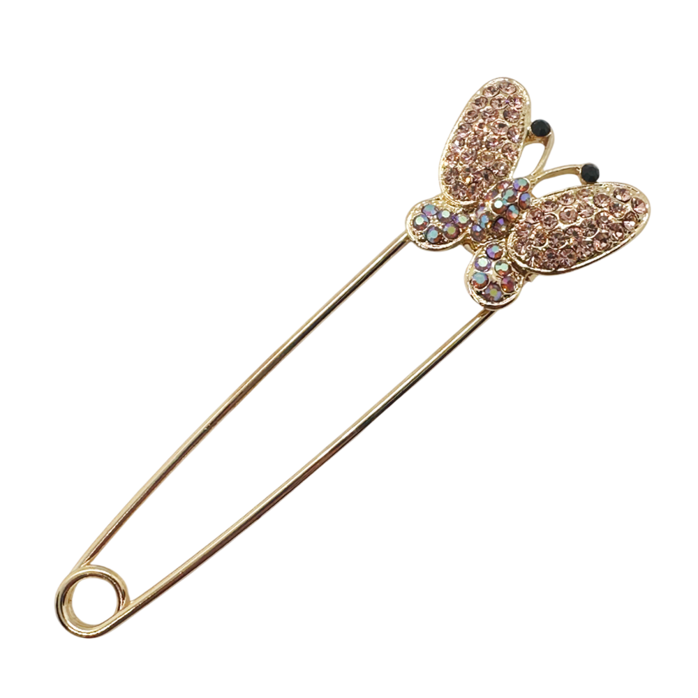 Această broșă tip ac de siguranță impresionează prin designul elegant al fluturelui auriu, decorat cu cristale strălucitoare în nuanțe calde. Este un accesoriu rafinat, ideal pentru a adăuga un accent luminos sacourilor, paltoanelor, eșarfelor sau rochiilor. Perfectă atât pentru purtare zilnică, cât și pentru ocazii speciale, sau ca idee de cadou inspirată.