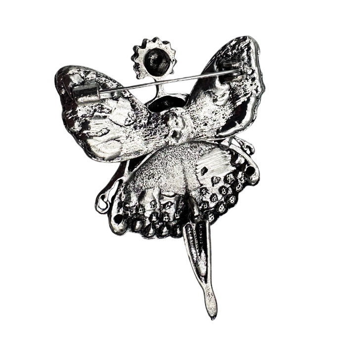 Brosa Inger cu Cristale EVANGELINE, Argintiu, 6 cm