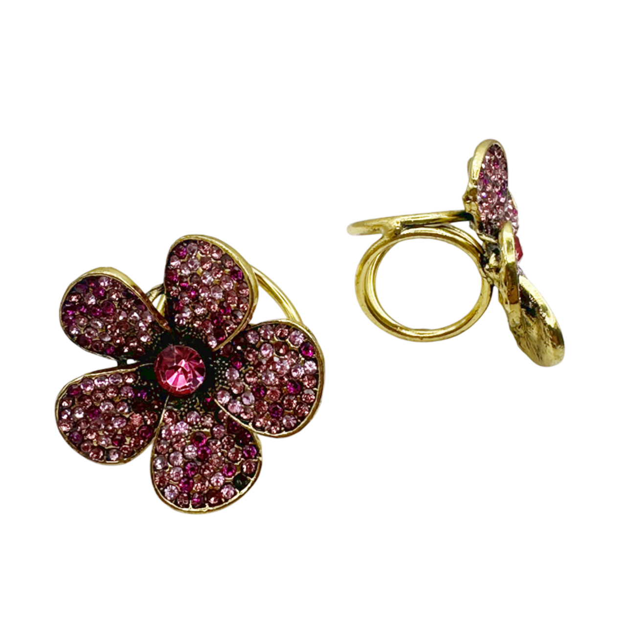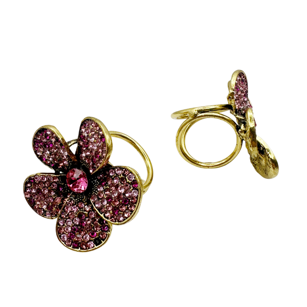 Inel de eșarfă elegant în formă de floare LOLITA, realizat din metal auriu, decorat cu detalii strălucitoare.