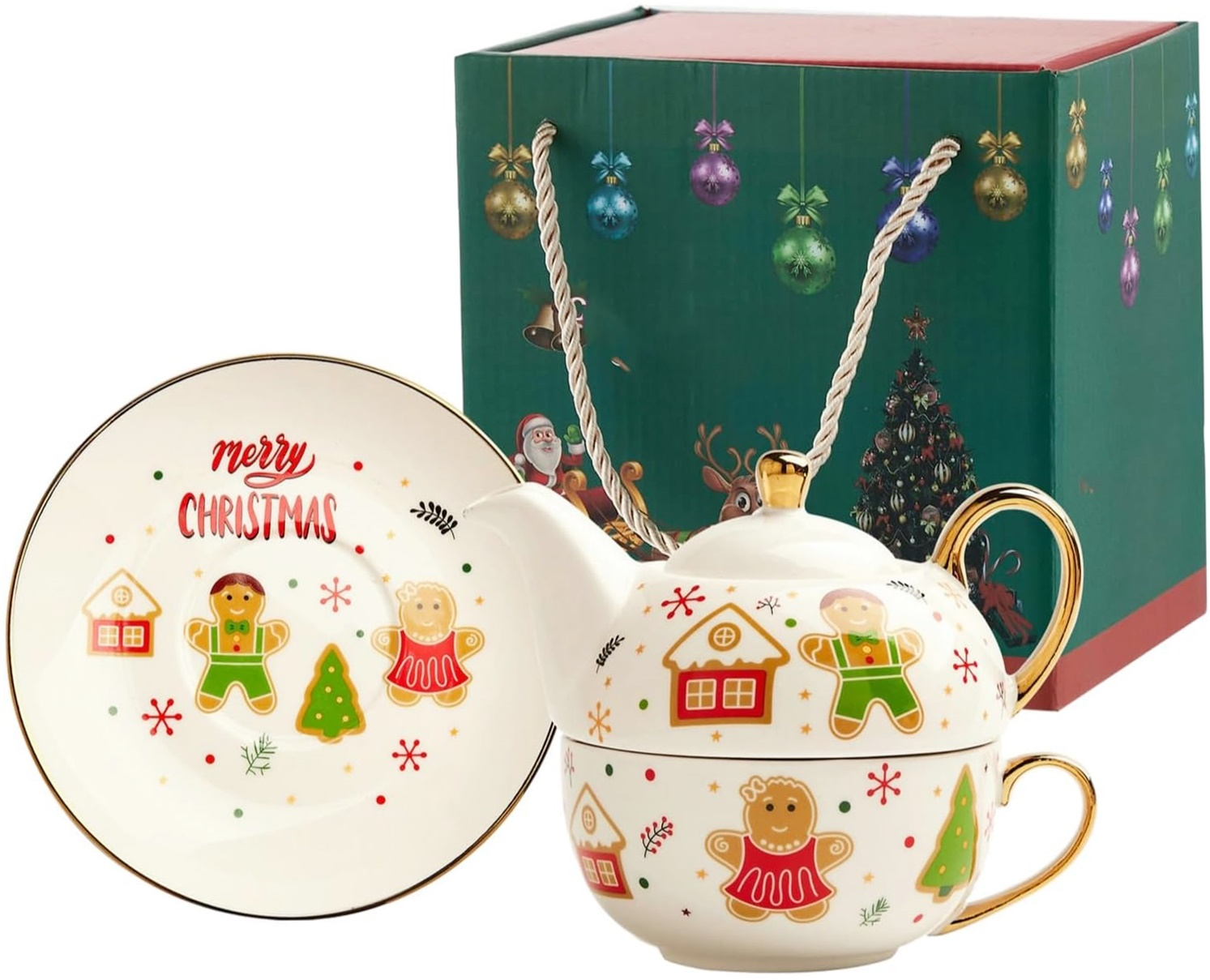 Ceainic cu ceasca Craciun GINGERBREAD, 370ml, Portelan