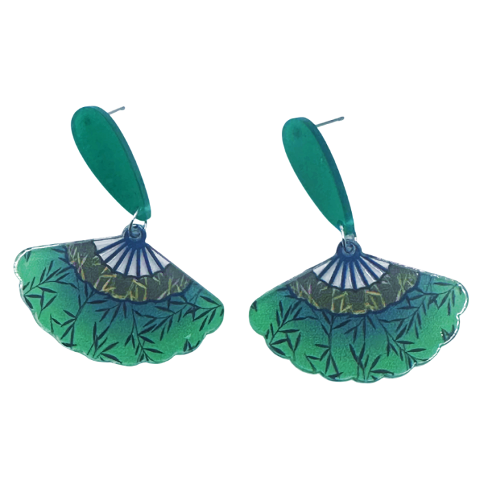 Acești cercei în nuanțe de verde aduc cu ei liniștea naturii și eleganța formelor inspirate din evantaiele decorative. Designul lor grafic, cu frunze stilizate și detalii subtile, creează un accesoriu echilibrat, modern și ușor de purtat.
