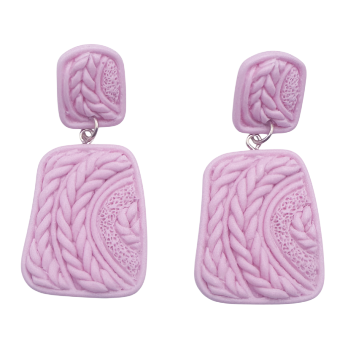 Cerceii roz IVY aduc un strop de căldură și feminitate oricărei ținute. Designul lor în două piese, cu forme geometrice rotunjite și textură inspirată din împletitura tricotată, oferă un aer cozy și jucăuș, dar rămâne elegant și ușor de purtat.