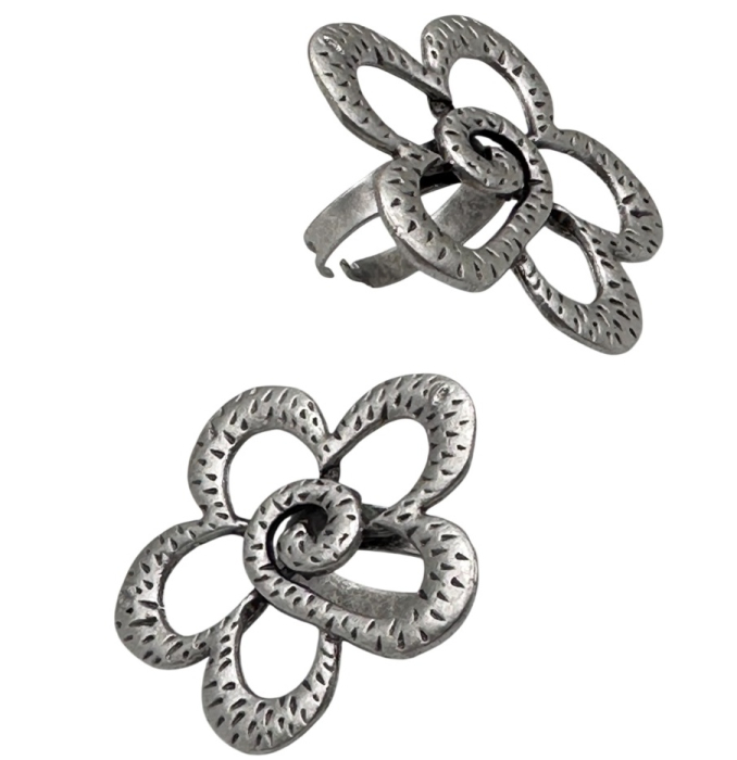 Inel din zamac DIKKA cu simboluri florale, Reglabil