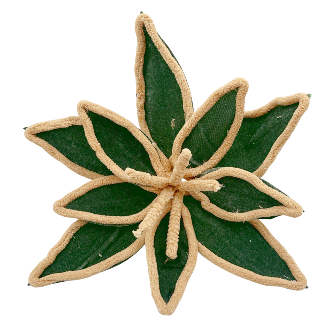 Răsfață-ți decorul de sărbători cu această floare decorativă verde cu margini bej, perfectă pentru brad, coronițe sau aranjamente de masă. Un detaliu rafinat care aduce o notă naturală și elegantă în fiecare colț al casei.