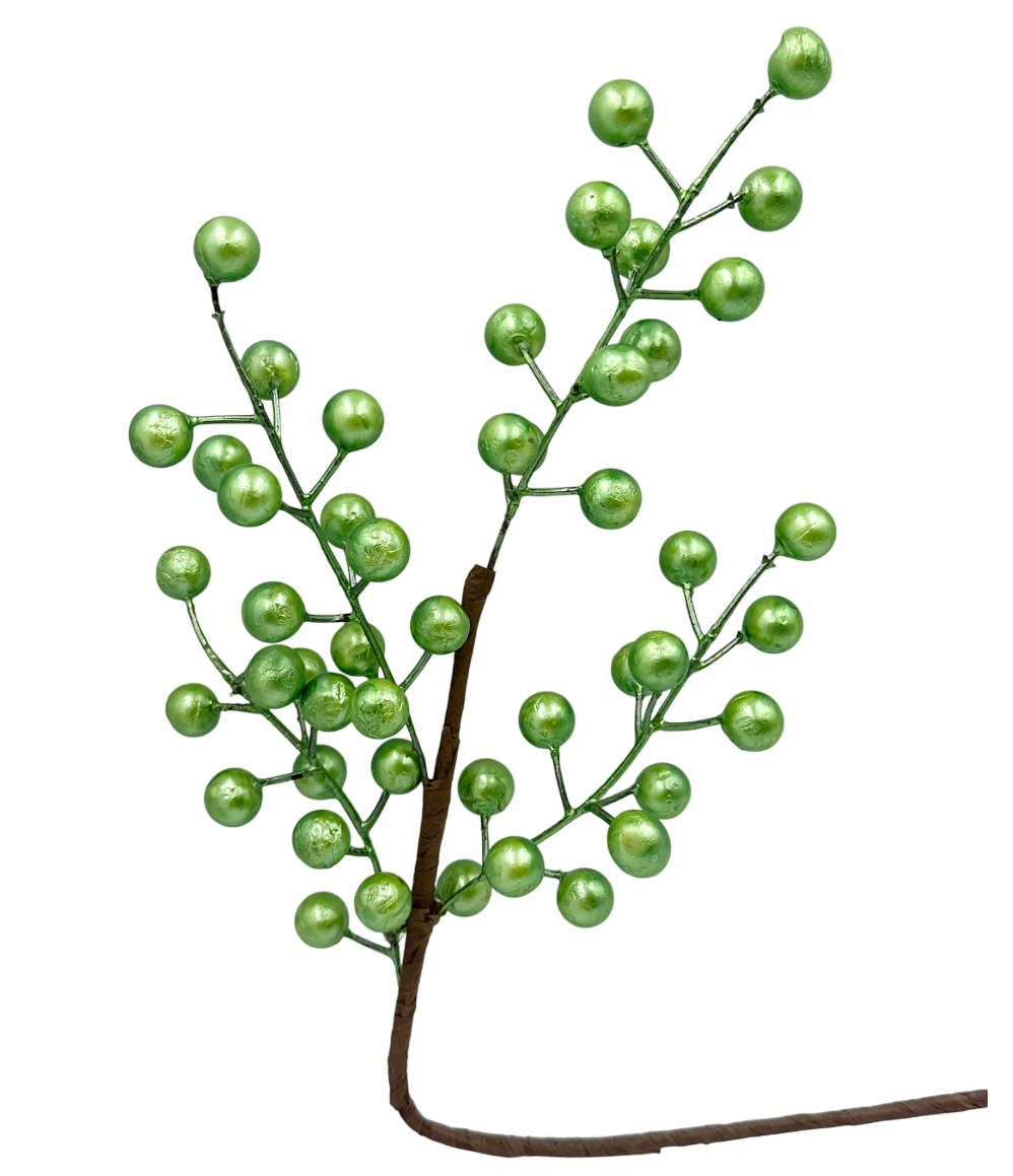 Ramura decorativa cu bobite verzi PEARL, 40cm