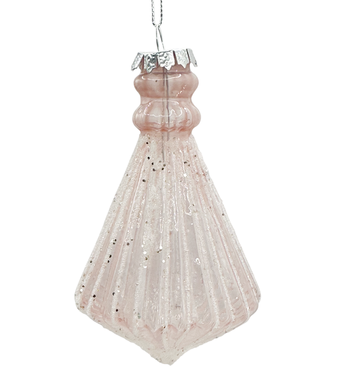 Transformă-ți bradul într-o poveste elegantă de iarnă cu acest glob roz pal prăfuit, decorat cu sclipici argintiu delicat.
