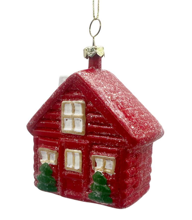 O decorațiune elegantă vintage în formă de casuta rosie, realizata din material ușor și acoperita cu sclipici fin pentru un efect magic în bradul de Crăciun.