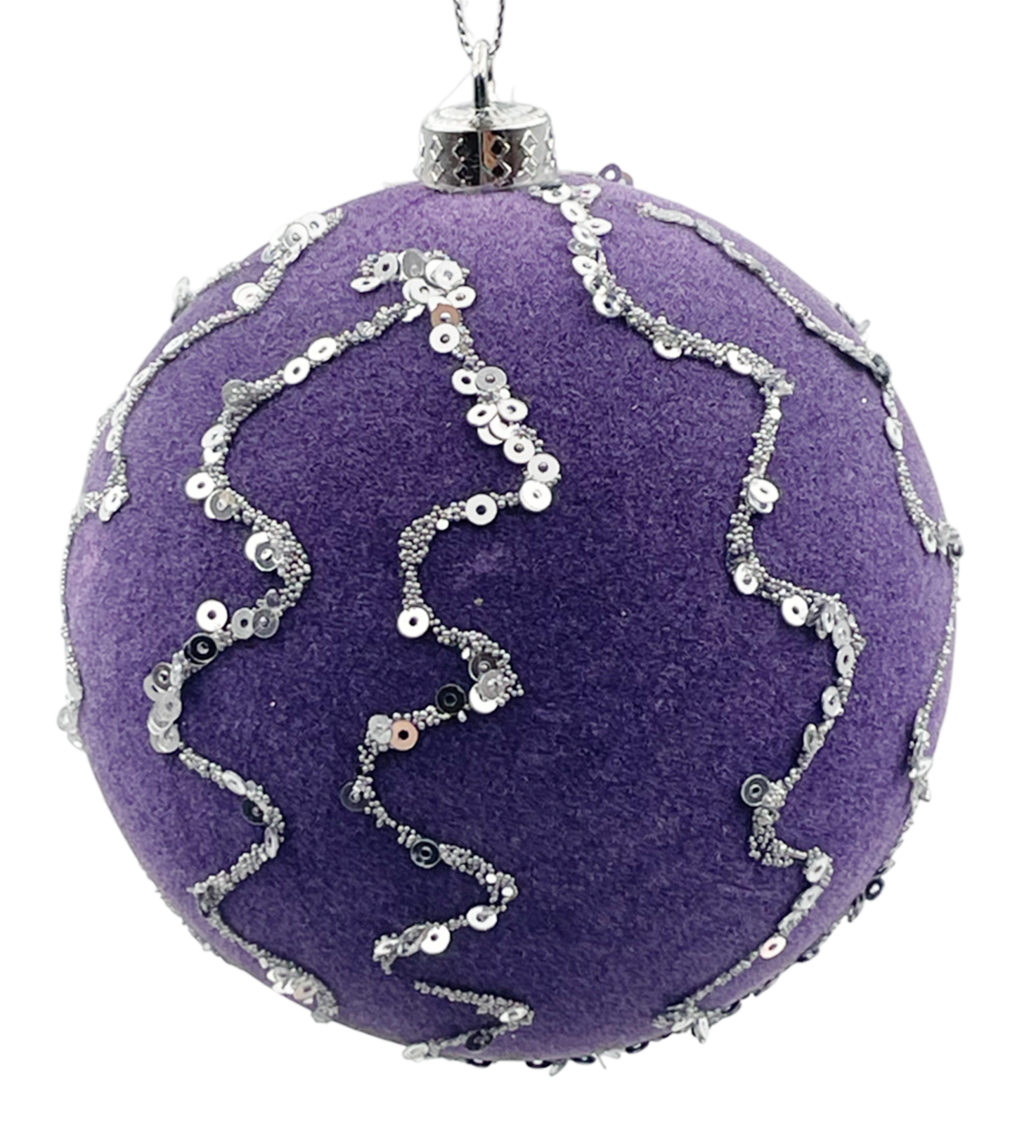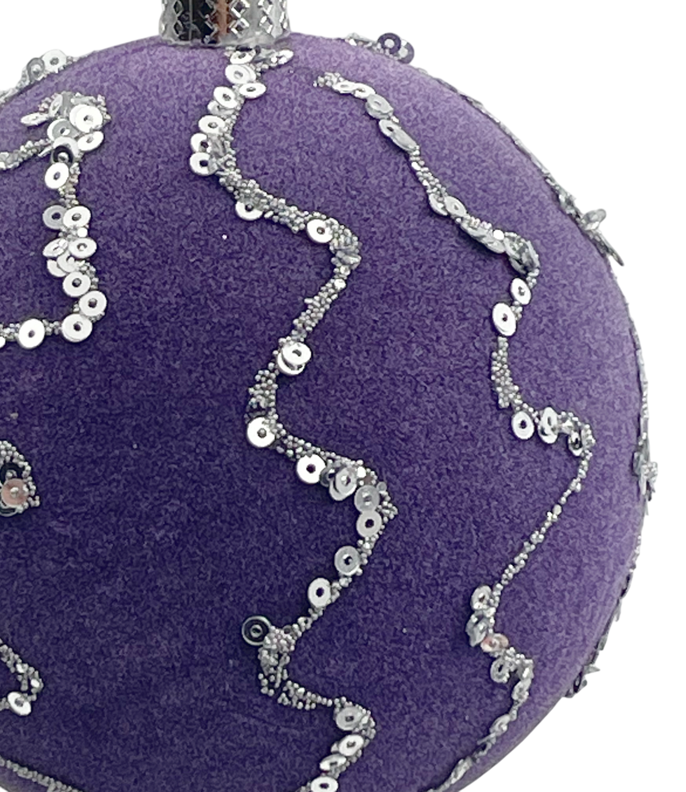 Globul mov din catifea poate fi utilizat atât într-un decor clasic, cât și într-unul modern, pentru a adăuga accente festive.