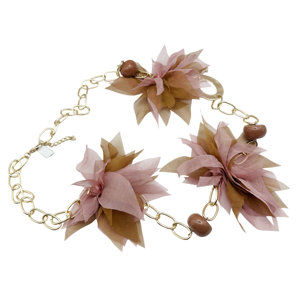Colier lung cu flori CAROLINA, Auriu/ Roz prafuit