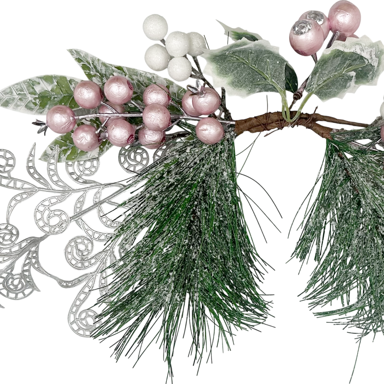 Decorta cu brad artificial si bobite fructe de padure roz perlat
