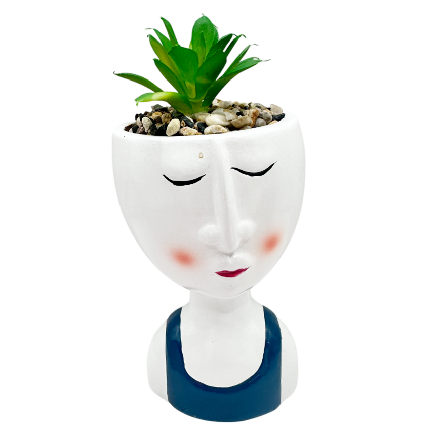 Ghiveci decorativ tip bust LETY, Navy, Cu planta artificiala, 16 cm