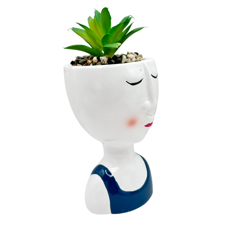 Ghiveci decorativ în formă de bust, cu plantă artificială inclusă
