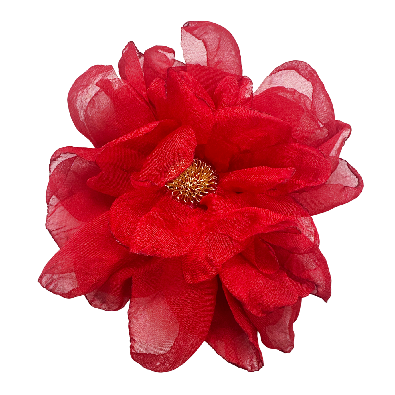 Delicată și rafinată, floarea decorativă „Vintage Bloom” este un accesoriu versatil, perfect pentru a adăuga un plus de eleganță oricărei ținute. Realizată din material textil fin, cu petale vaporoase în nuanțe intense de roșu și un centru discret auriu, aceasta atrage privirile prin aspectul său sofisticat.