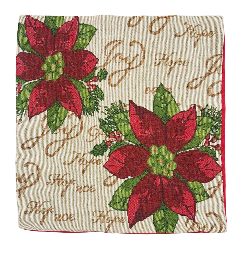 Față de pernă decorativă cu imprimeu de Crăciun - pe o singura fata - , în nuanțe de roșu, verde si bej-auriu