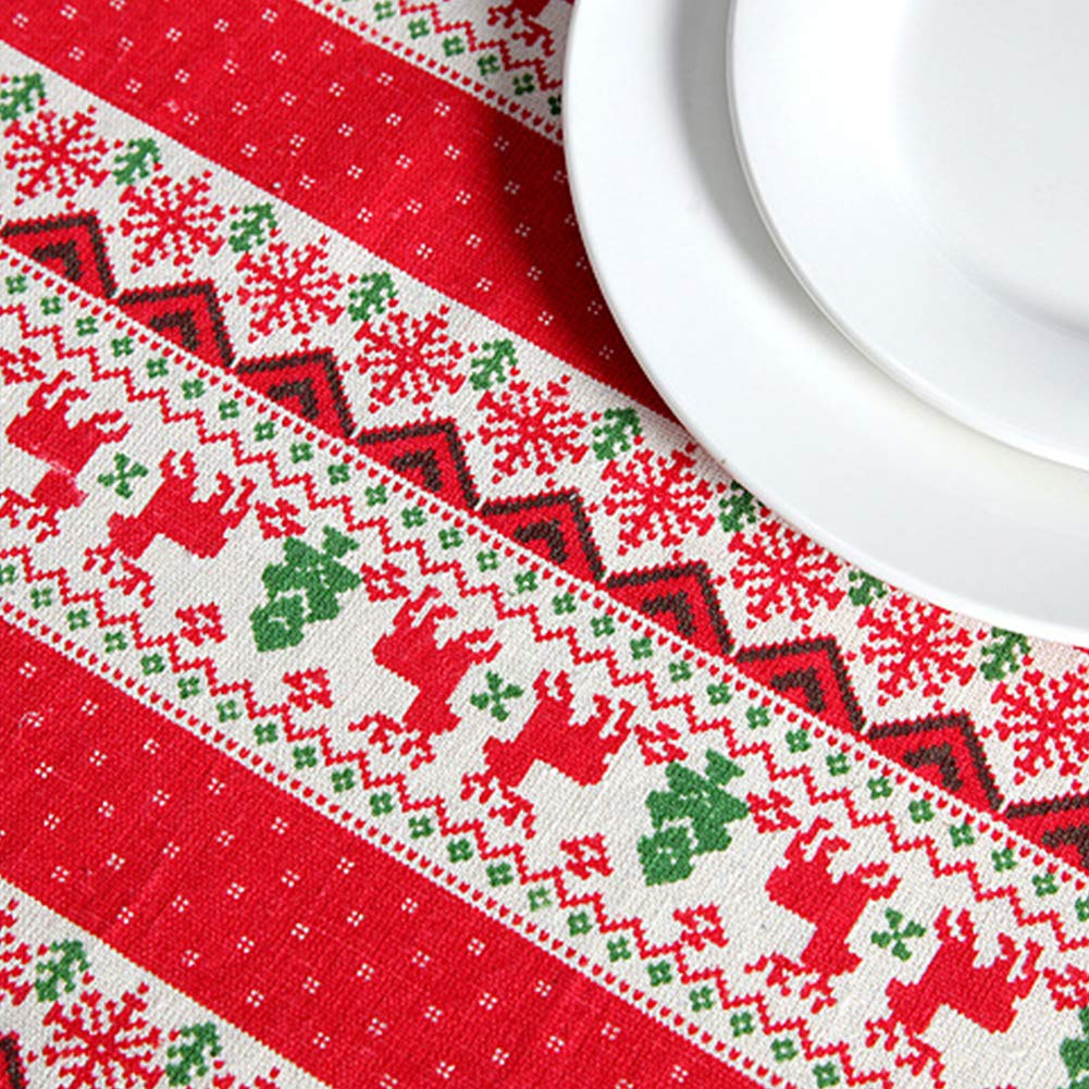 Transformă masa de sărbătoare într-un decor magic cu această față de masă de Crăciun rosie, cu imprimeu festiv. Realizată din material textil rezistent, cu un design vesel ce include brăduți, reni, fulgi de zăpadă și motive tradiționale, aceasta oferă încăperii un aer cald, familial și plin de culoare.