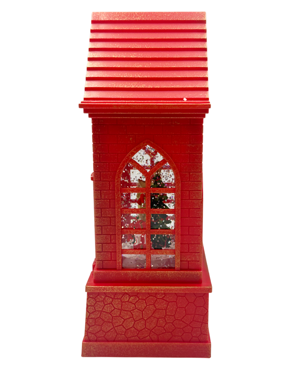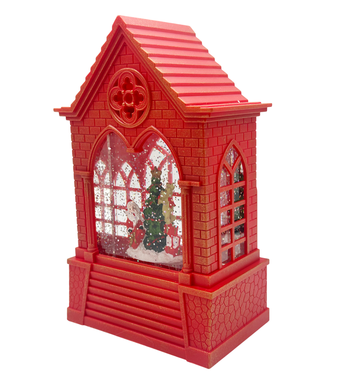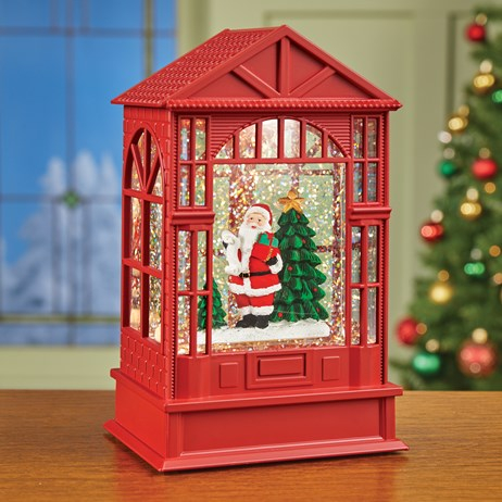 Felinar cu LED, Muzică și Efect Ninsoare – Casuta cu Moș Crăciun și Brad JOY, 21cm
