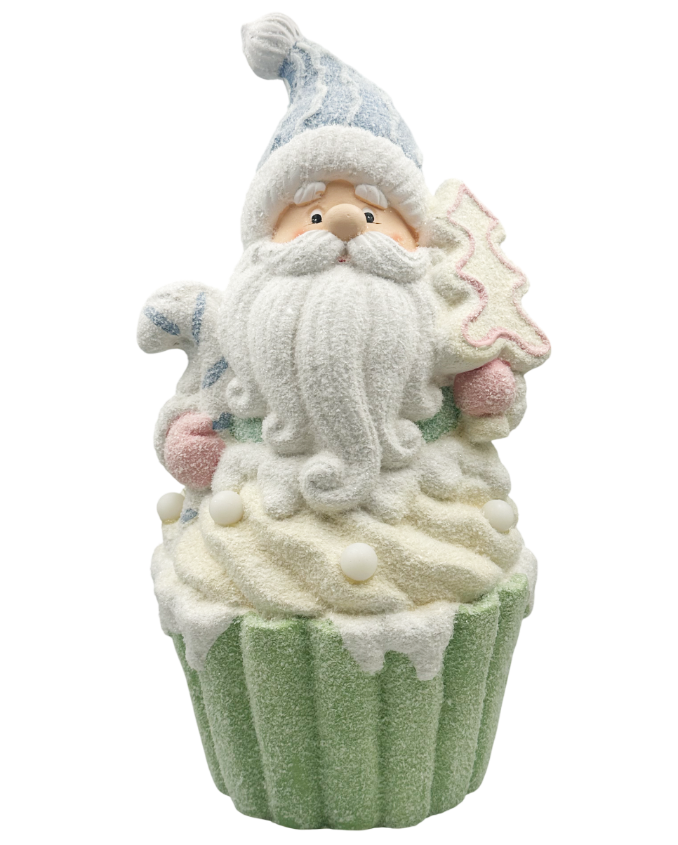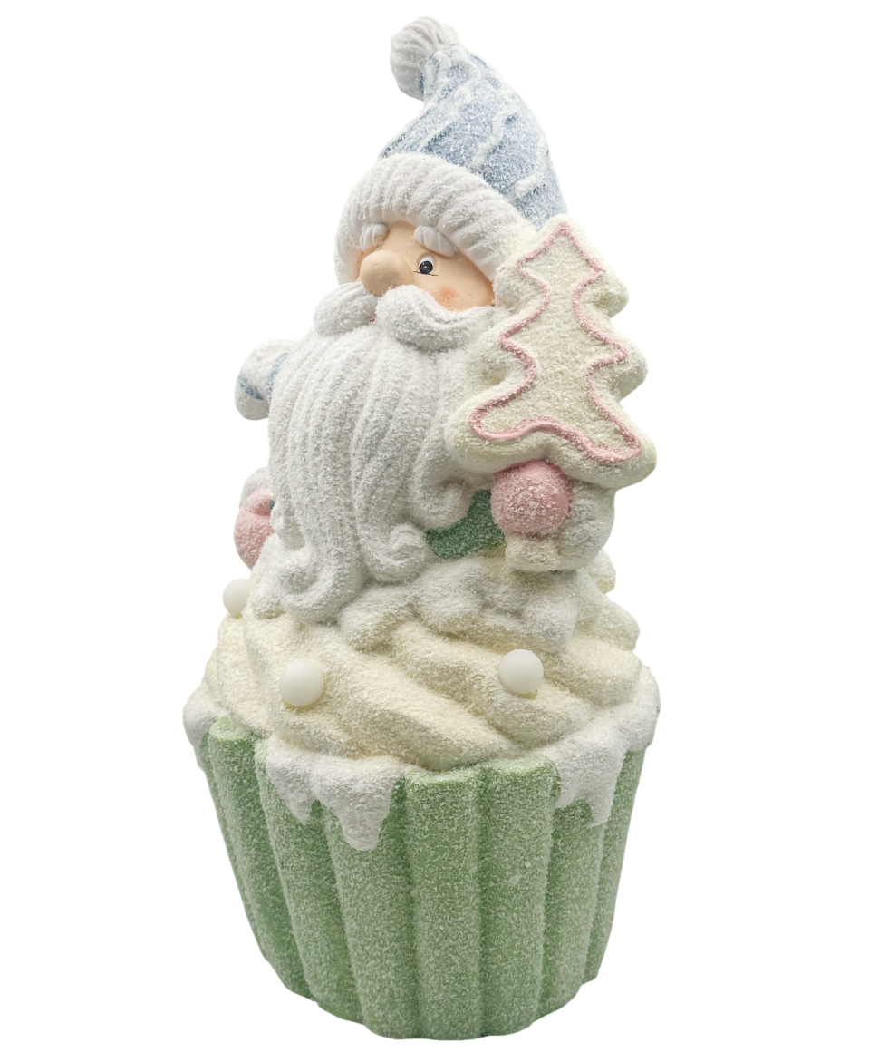 Figurină Moș Crăciun in briosa MUFFIN – cu LED-uri, 45cm