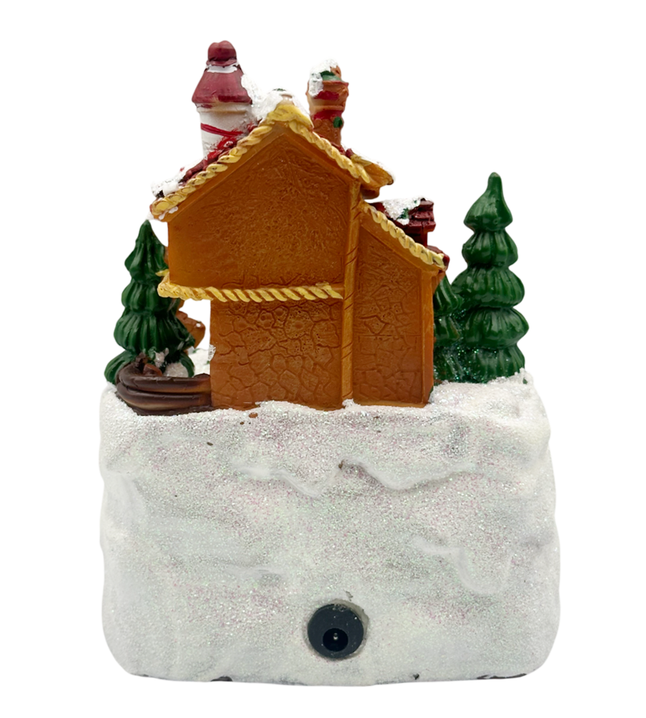 Efectul este completat de muzică de Crăciun, care transformă decorațiunea într-o piesă spectaculoasă, perfectă pentru masa festivă, vitrine tematice, living sau camera copiilor.
