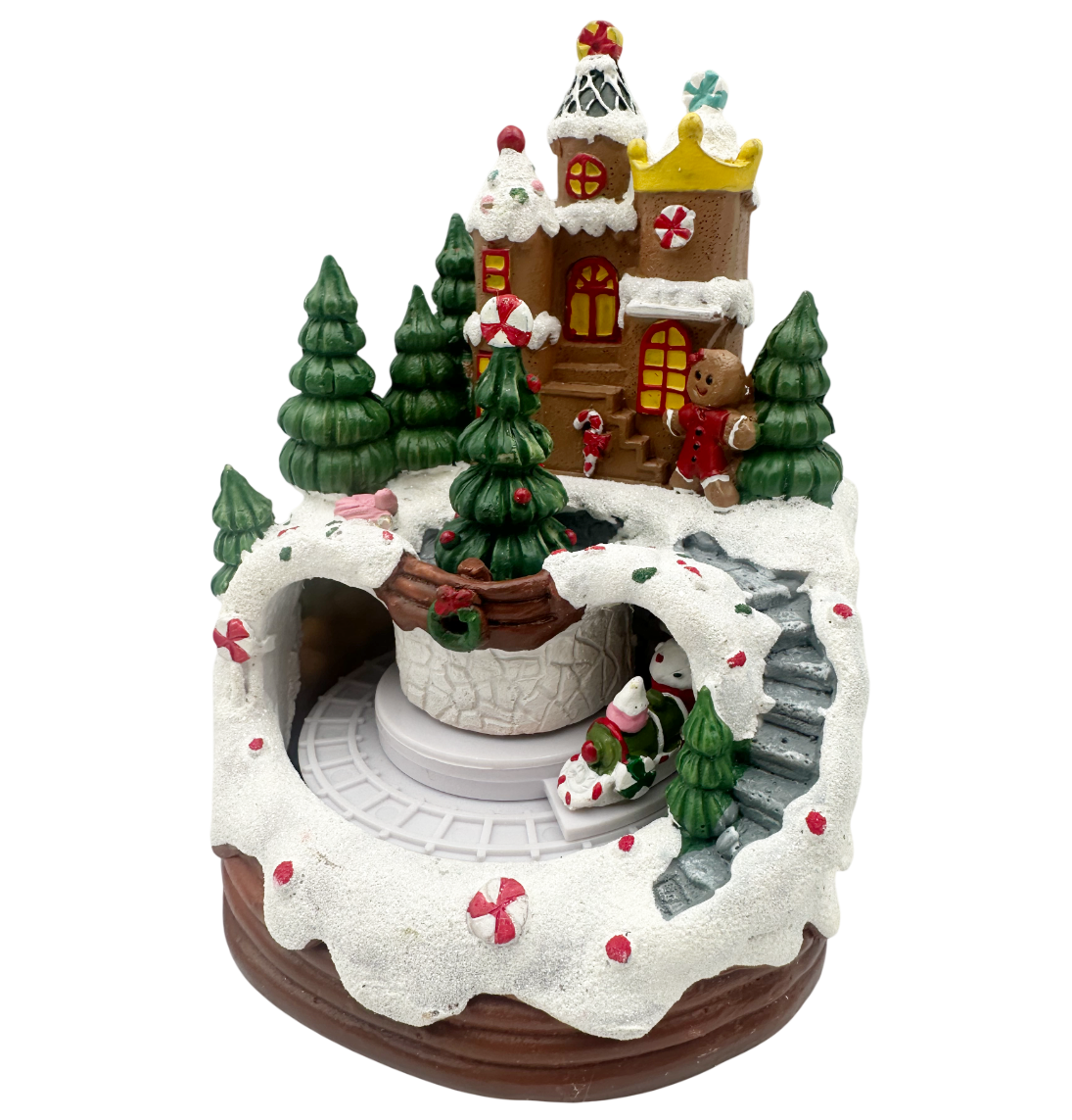 Adaugă un strop de magie dulce în decorul tău de sărbători cu această decorațiune „Candy Shop”, plină de culoare și farmec. Căsuța inspirată din deserturi de iarnă este înconjurată de brăduți, acadele, bunătăți festive și un simpatic omuleț de turtă dulce.
