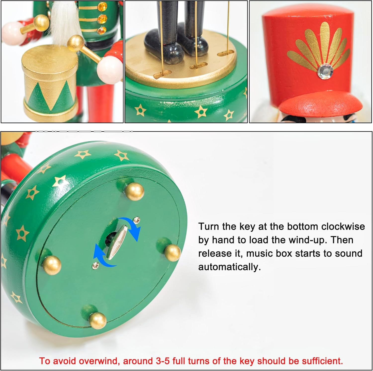 Are la baza o cutie muzicala si este prevazut cu cheita in partea posterioara