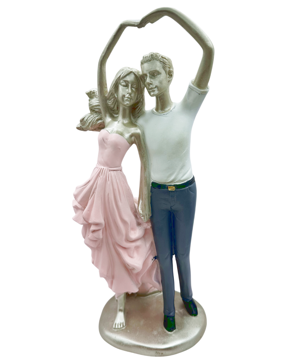 Această figurină decorativă surprinde un moment plin de grație și romantism între doi îndrăgostiți. Poziția apropiată și gesturile delicate transmit emoție, pasiune și conexiune profundă, transformând această piesă într-un simbol al iubirii.