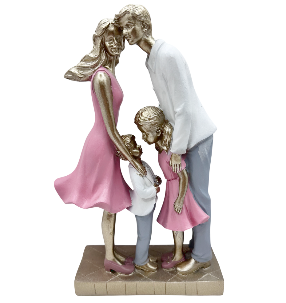 Această figurină decorativă reprezintă frumusețea și armonia unei familii unite, surprinzând un moment plin de iubire între părinți și cei doi copii. Gesturile tandre și apropierea dintre personaje transmit căldură, protecție și conexiune autentică.
