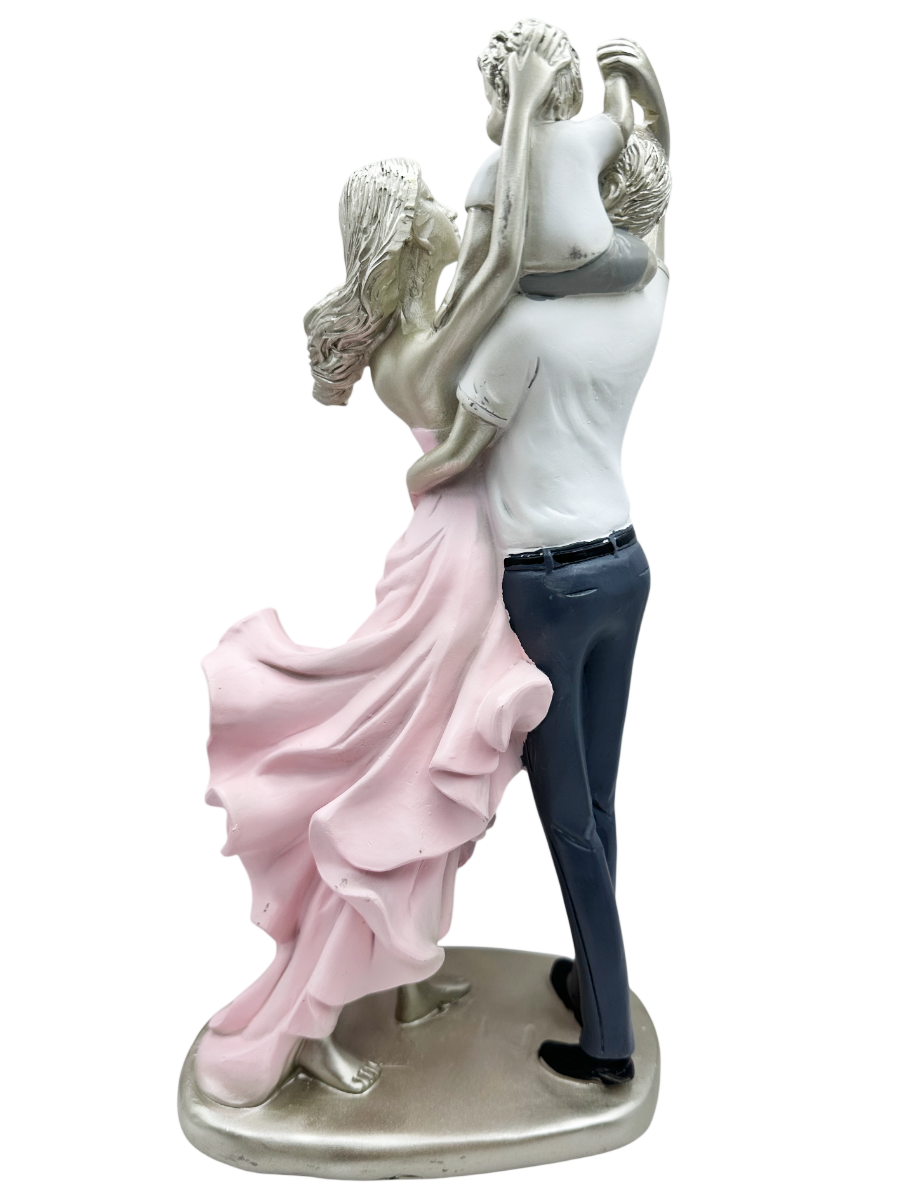 Rochia în mișcare și gesturile delicate transmit naturalețe și apropiere, iar compoziția simbolizează armonia, sprijinul și bucuria de a fi împreună. Este o piesă decorativă cu un mesaj profund, potrivită pentru orice locuință în care familia este pe primul loc.