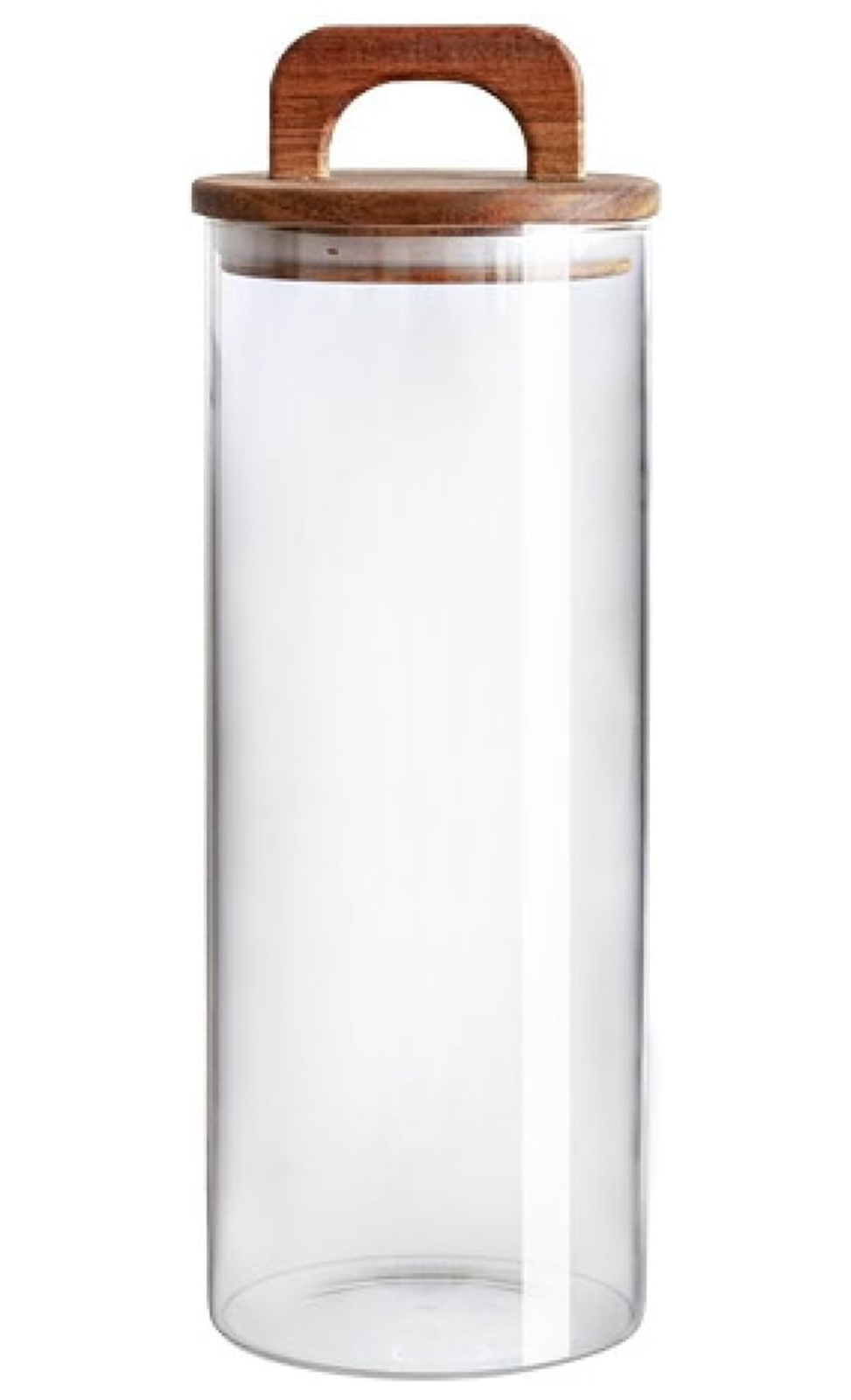 Doza de sticla borosilicata cu capac de lemn, pentru o bucatarie moderna. Datorita capacului, va mentine alimentele proaspete timp indelungat, le va pastra aromele si le va proteja de insectele nedorite.