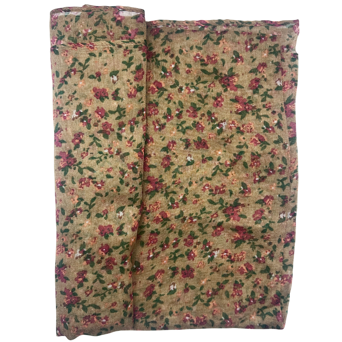 Eșarfă delicată din vascoză, cu imprimeu floral fin pe fundal maro-deschis