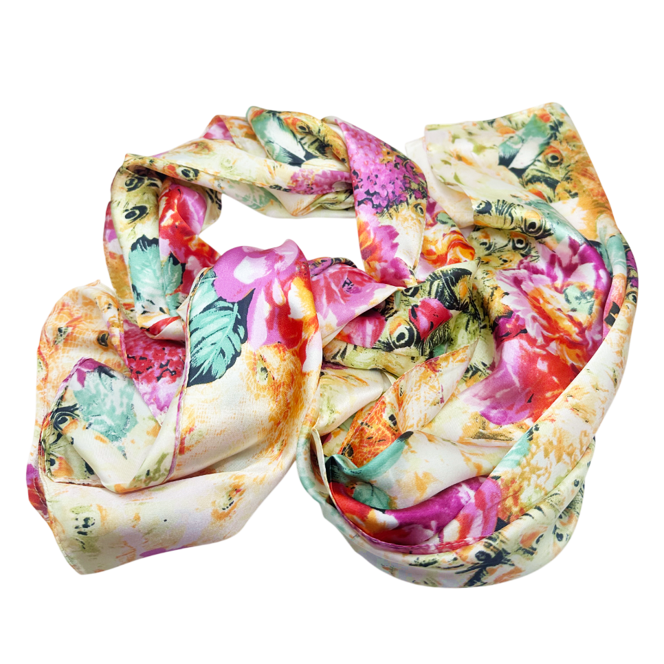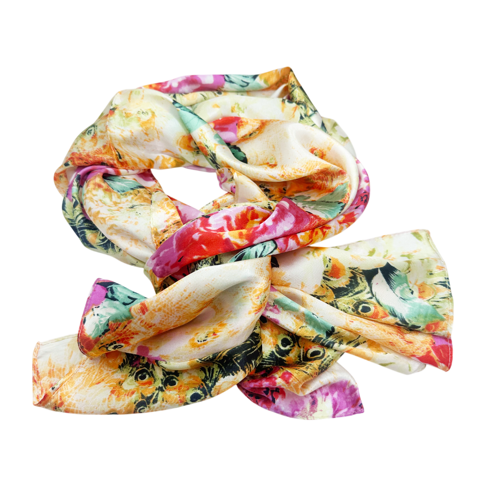 Experimenteaza farmecul culorilor cu această esarfa imprimata, din matase si poliester