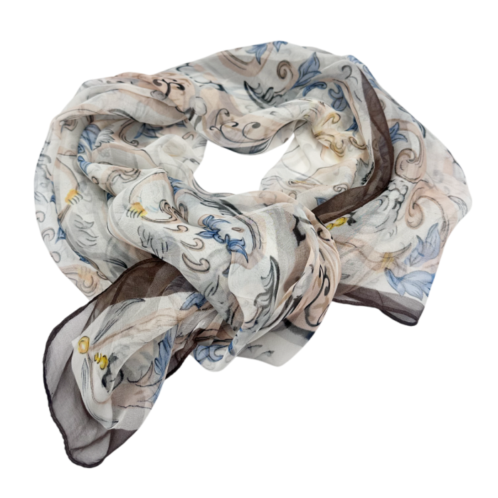 Delicată, feminină și ușor de purtat, această eșarfă cu imprimeu floral în nuanțe de maro aduce un plus de prospețime oricărei ținute.