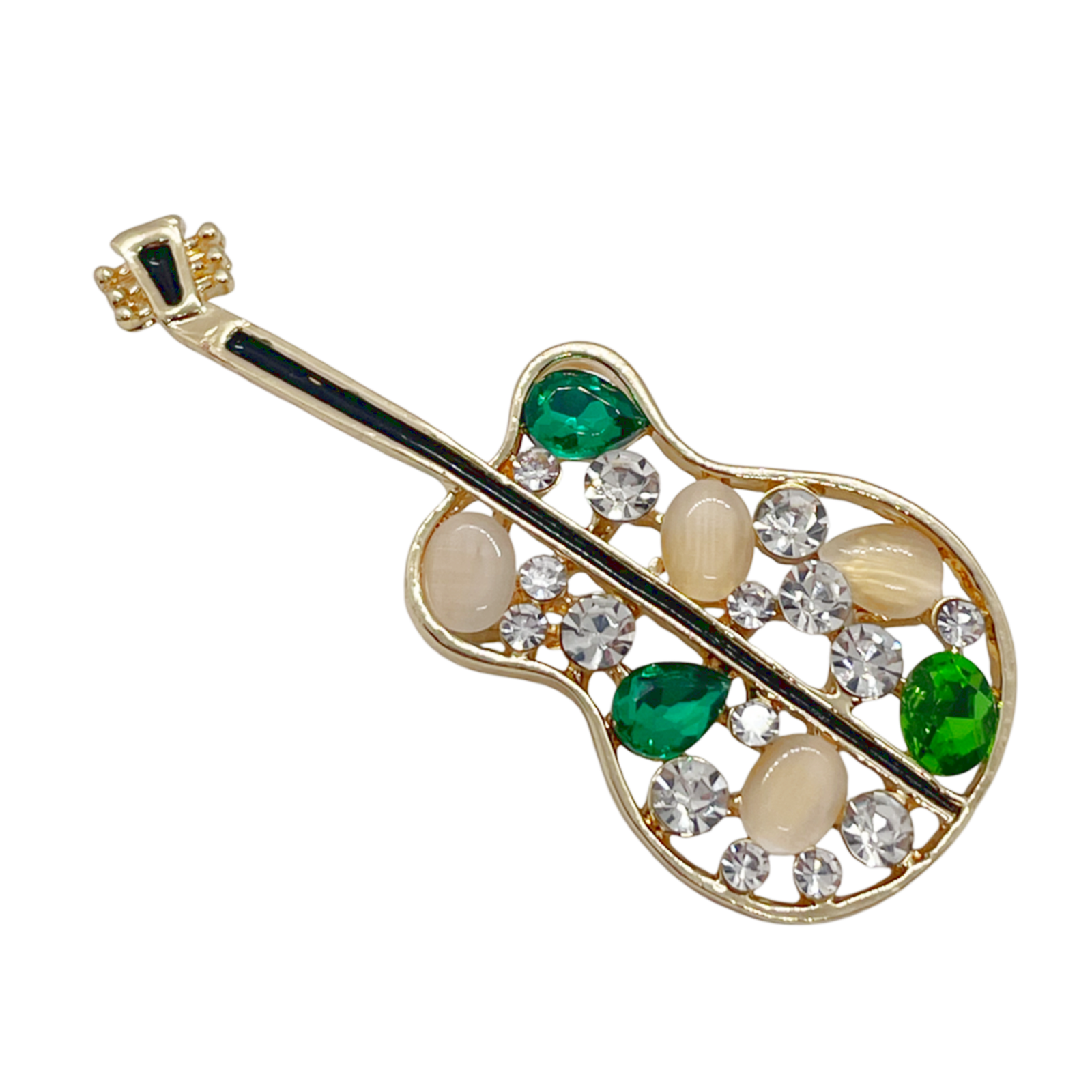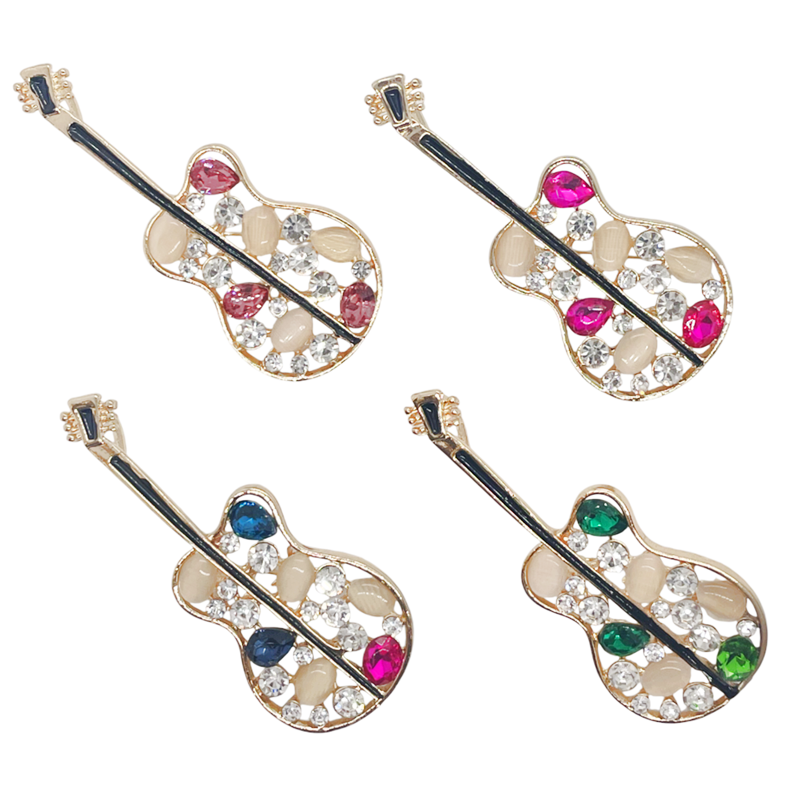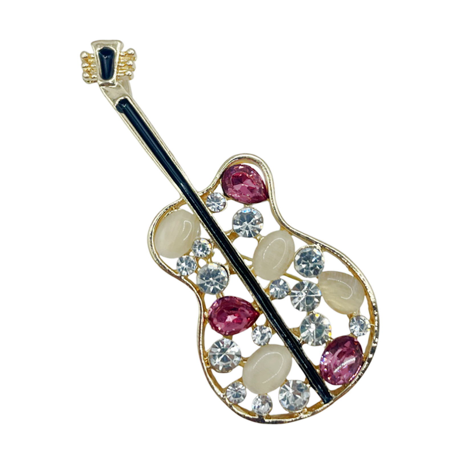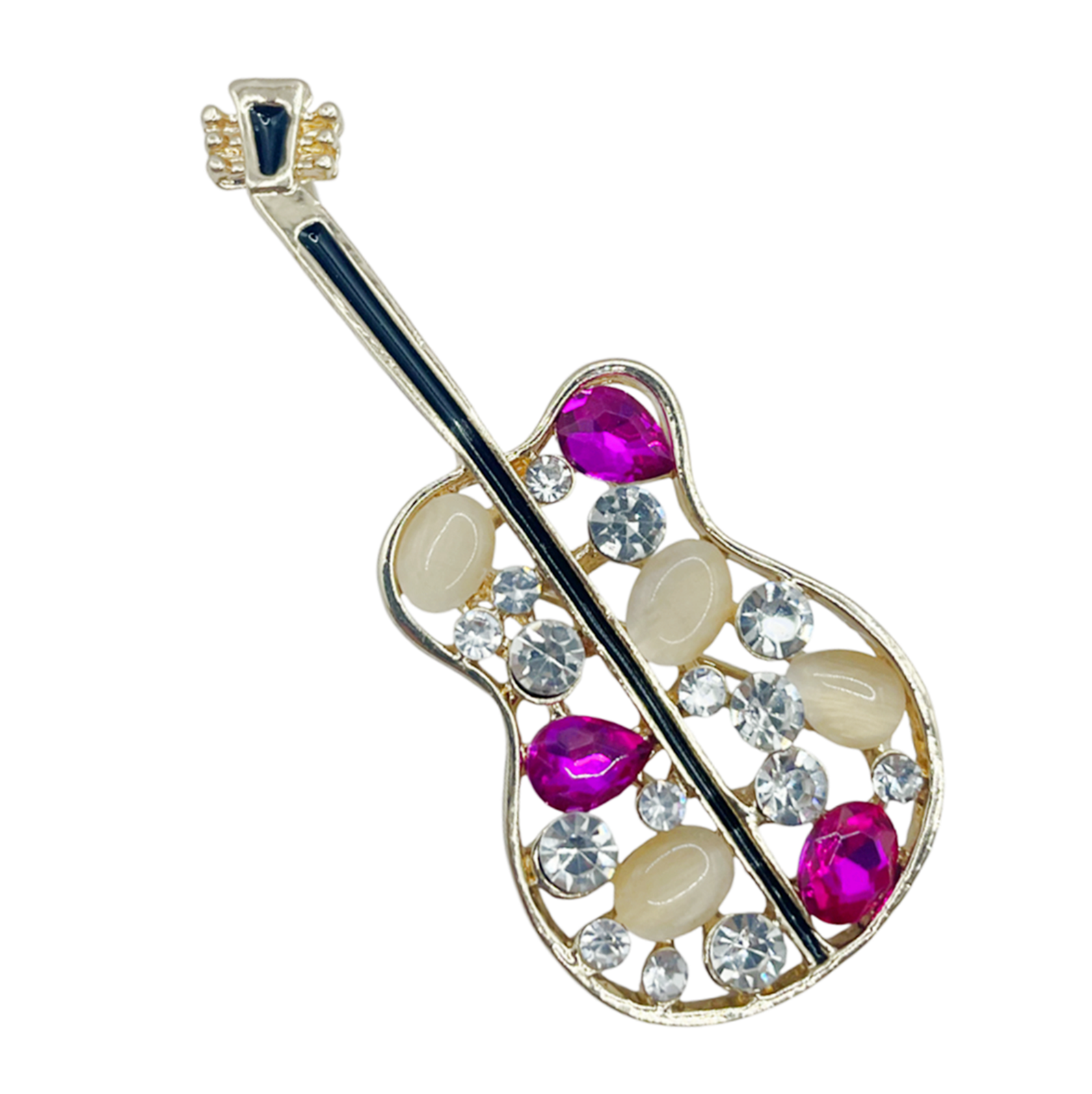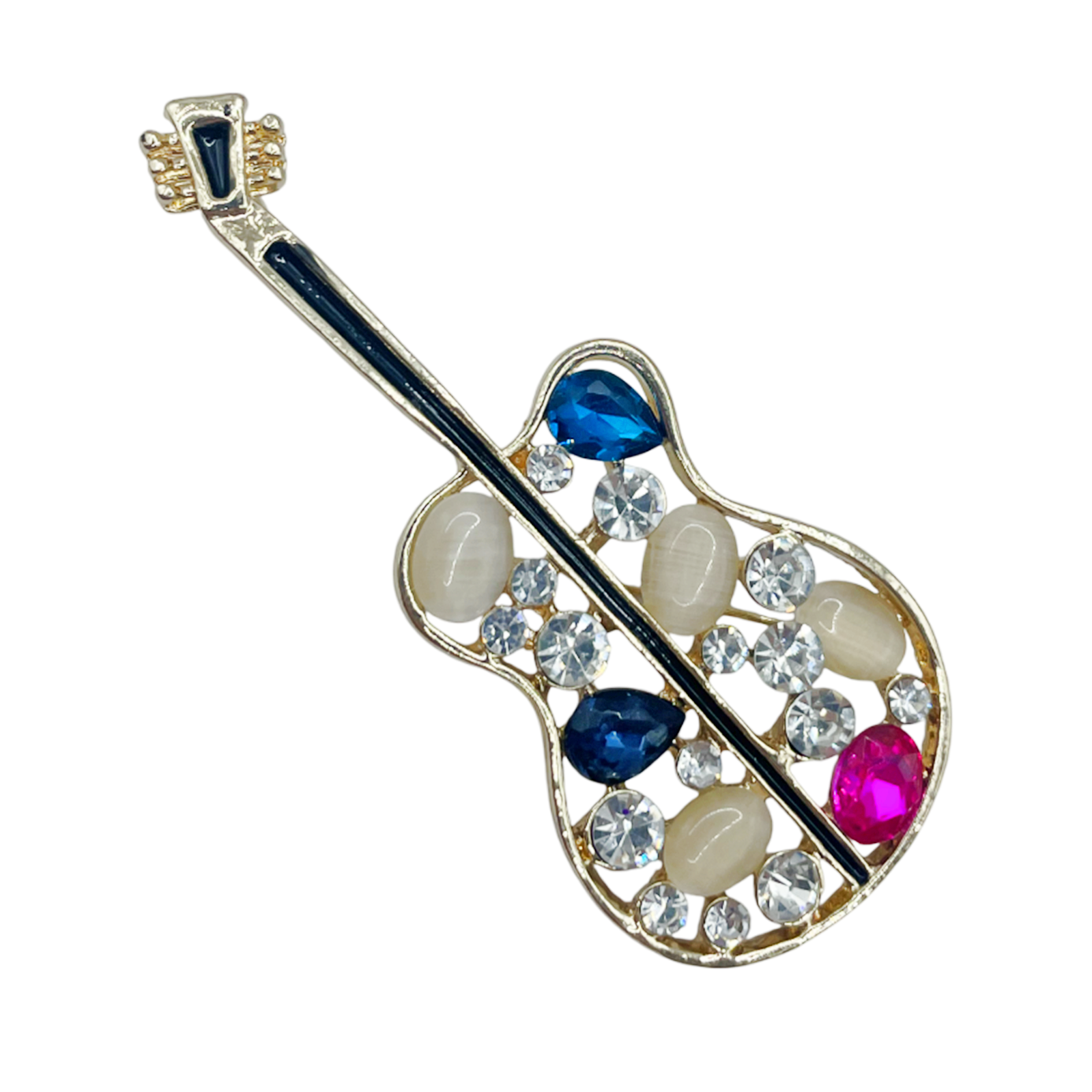 Brosa Chitara cu strasuri VALERIE, Auriu, 6.5cm