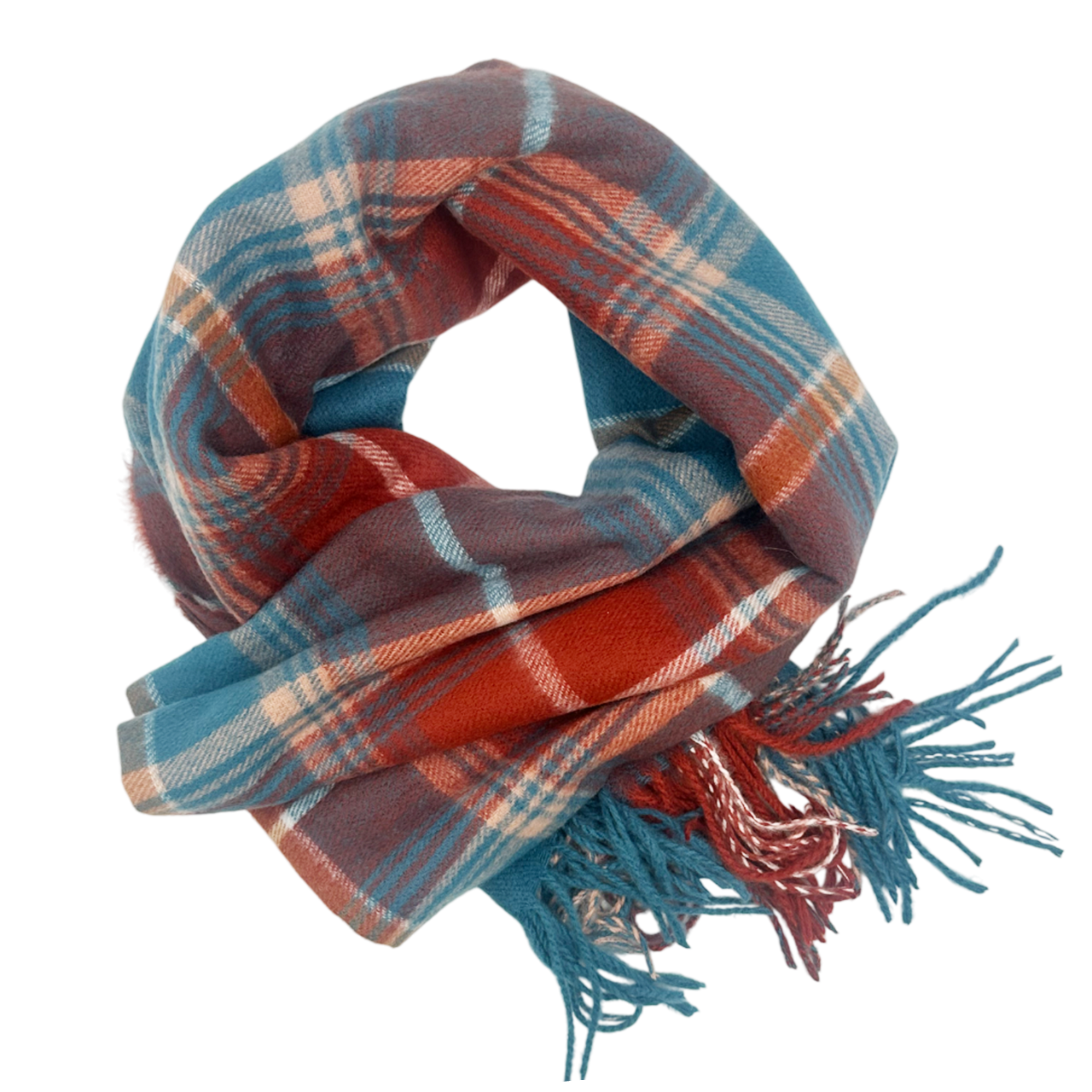 Esarfa Cashmere AUDREY, Caramiziu/ Albastru, 70x190cm