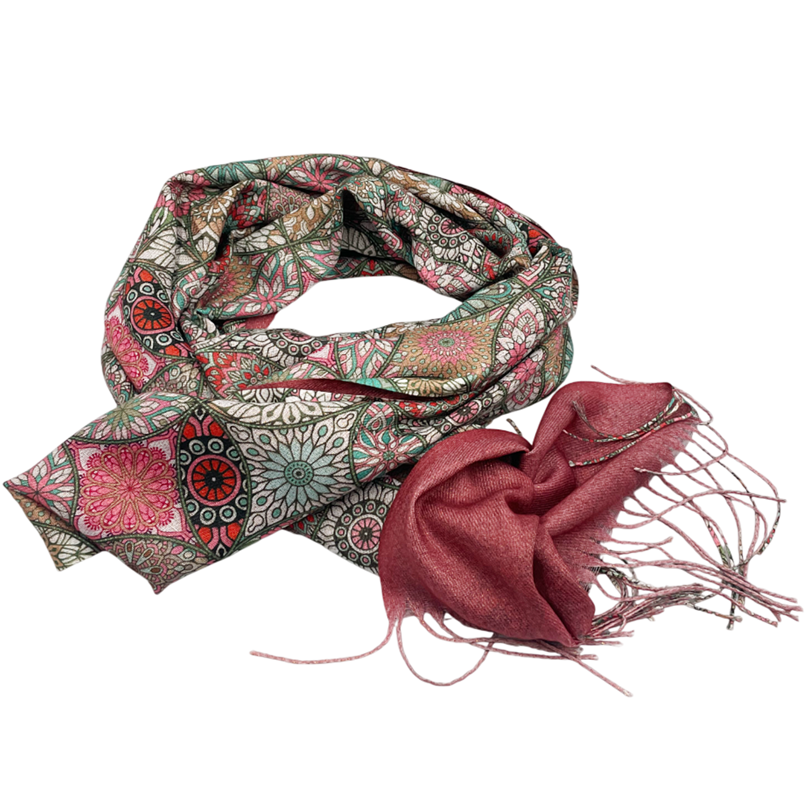 Esarfa cu 2 fete Cashmere MICHELLE, Roz/ Verde, 70x180cm