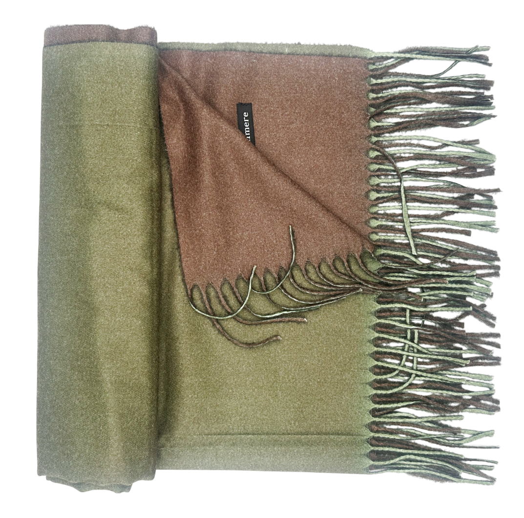 Esarfa cu 2 fete Cashmere Veronique, Verde/ Maro, 70x180cm