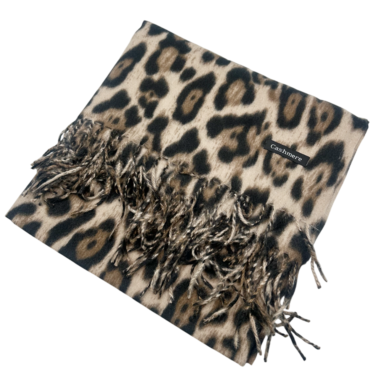 Esarfa cu franjuri Cashmere LEOPARD, Bej, 100x100cm