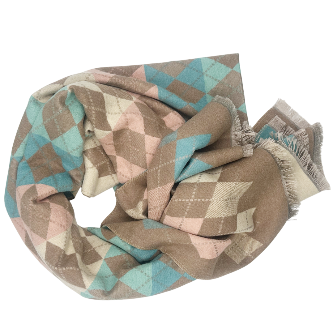 Esarfa tip Poncho in carouri ALBERTINA, Bej taupe, 65x185cm