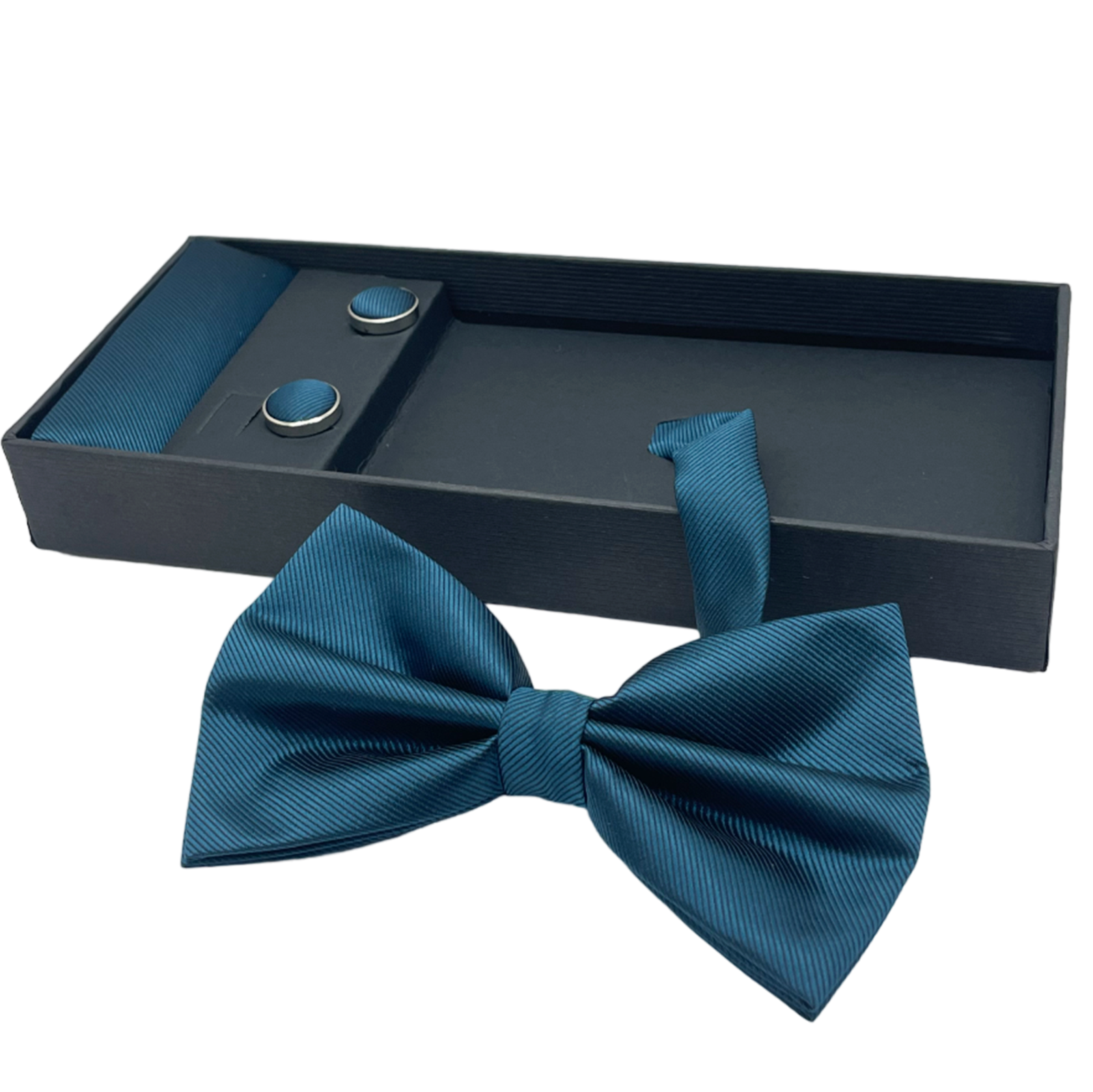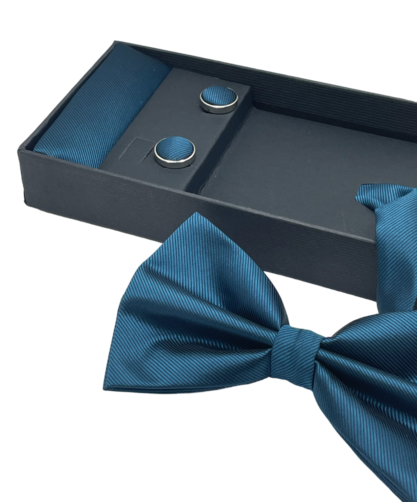 Papion albastru-ocean, MISTERY, Set cu butoni si batista