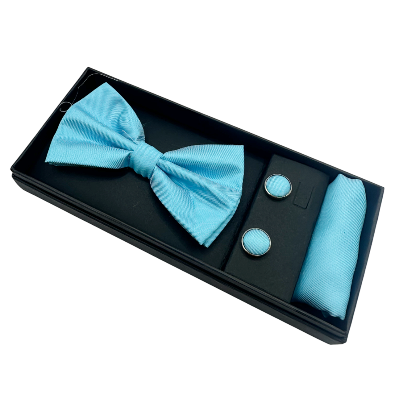 Papion bleu turcoaz, MISTERY, Set cu butoni si batista