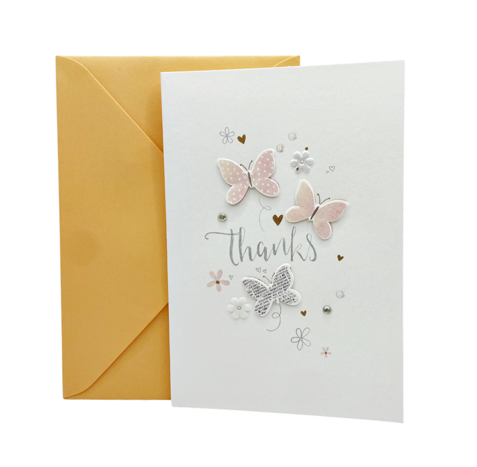 Felicitare cu plic portocaliu THANKS, 9.5x14cm
